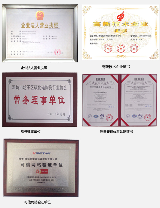 濰坊凱華碳化硅微粉有限公司成立于2002年,國家高新技術(shù)企業(yè),公司占地40畝,標準廠房19000平方,辦公樓、研發(fā)中心2000平方,年生產(chǎn)能力3萬噸。一直從事陶瓷級微粉的生產(chǎn)銷售,所生產(chǎn)的微粉具有純度高、粒形好、穩(wěn)定性強等特點,主要用于反應燒結(jié)、無壓燒結(jié)、硅碳棒新工藝、汽車尾氣處理(DPF)、納米隔熱保溫、機車制動、防腐涂料、精密研磨拋光、橡膠樹脂等領(lǐng)域。標準產(chǎn)品有:F240、F1200、W40、W28、W20、W14、W10、W7、W5、W3.5、 W2.5、W2、W1.5、W1、W0.5、D3E、5S、100F及整形高密度系列綠碳化硅微粉,廣泛應用于燒結(jié)、防腐、研磨拋光、涂腐等廣大領(lǐng)域。